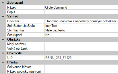 - V podokně Vlastnosti změňte vlastnosti přidaného příkazu.