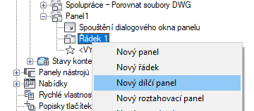 - Klikněte pravým tlačítkem na řádek a vyberte položku Nový dílčí panel nebo Nový roztahovací panel.