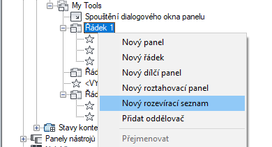 Na poslední pozici v řádku se vytvoří nový rozevírací seznam (s názvem Nový rozevírací seznam).