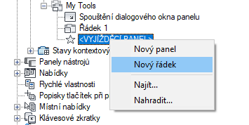 - Pravým tlačítkem klikněte na panel pásu karet, do kterého chcete přidat řádek. Klikněte na položku Nový řádek.