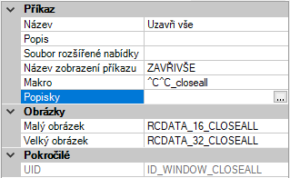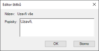 V dialogu Editor štítků zadejte do pole Štítky text, který představuje štítek pro příkaz.