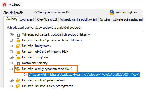 BLOCKSRECENTFOLDER – Nastaví cestu, kde jsou uloženy poslední vložené nebo vytvořené bloky.