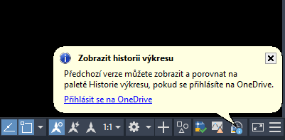 Po přihlášení zobrazí paleta Historie výkresu seznam všech předchozích verzí daného výkresu.