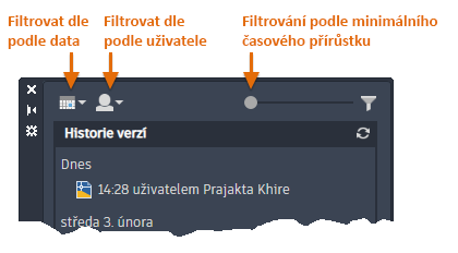 Historii verzí výkresů uložených v cloudu můžete zobrazit na nové paletě Historie výkresů, kde je můžete porovnat s aktuální verzí výkresu.