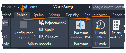 HISTORIEDWG – Otevře paletu Historie výkresu, která zobrazí historii verzí aktuálního výkresu, která je spravována podporovaným poskytovatelem cloudového úložiště.