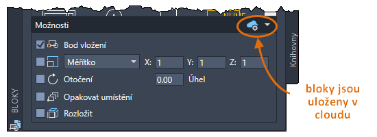 Pokud v této aktualizaci použijete účet na portálu Autodesk Account a synchronizujete bloky s poskytovatelem cloudového úložiště, vaše