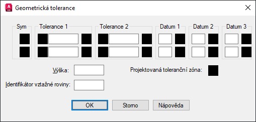 Po výběru geometrických charakteristických symbolů je dialog Geometrická tolerance zavřen a zobrazí se následující výzva: