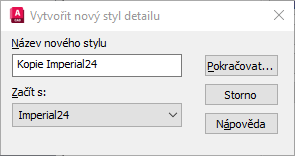Pojmenuje nový styl detailu. Výchozím názvem nového stylu je název stylu Začít s, před nějž se doplní „Kopie“.