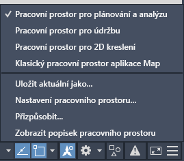 - Map klasický – rozhraní s nabídkami z předchozích verzí produktu. Některé nové příkazy nejsou z tohoto pracovního prostoru k dispozici.