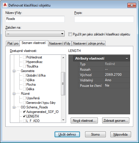 Chcete-li například změnit hladinu, typ čáry nebo barvu pro všechny členy třídy Cesty jako skupiny, vyberte tyto vlastnosti. Podle potřeby je možné nastavit výchozí hodnoty. Například všechny členy třídy Cesty můžete přiřadit k hladině Cesty.