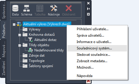 Práce s EPSG a skutečnými souřadnicovými systémy Mentor nebo definice vlastních. Používat lze například nástroje transformace, transformace s plochou a sledování souřadnic, a přesně tak georeferencovat data návrhu aplikace AutoCAD.