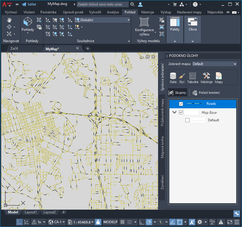 - V okně Správce zobrazení vyberte hladinu označenou Cesty a klikněte na tlačítko Styl v oblasti nabídky.