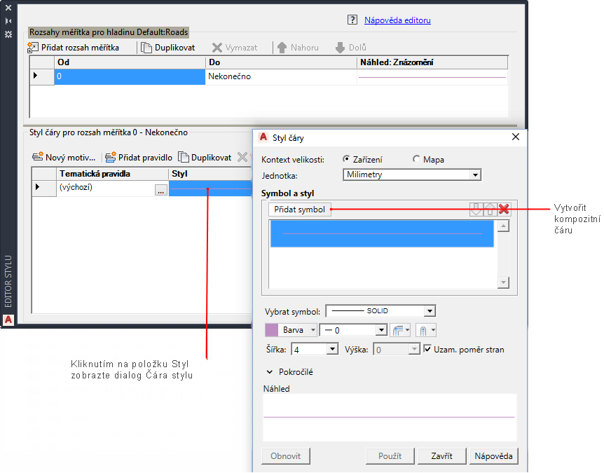 - Definujte jiný rozsah měřítka a zadejte pro něj styl plné čáry.