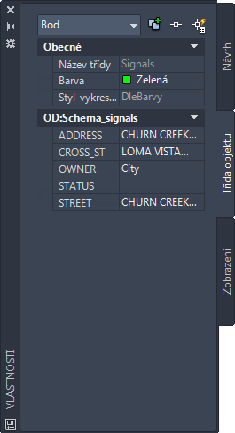 Na paletě Vlastnosti klikněte na kartu Třída objektů a prohlédněte vlastnosti.