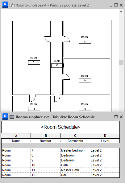 Po vytvoření místností je možné místnosti dočasně nebo trvale odebrat z modelu budovy.