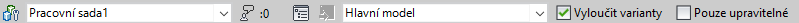 V zájmu urychlení práce na sdíleném projektu můžete použít stavový řádek. Tlačítko Pracovní sady v rozevíracím seznamu Aktivní pracovní sada má stejné funkce jako odpovídající nástroje na kartě Spolupráce