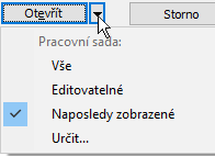 Otevření pracovních sad pomocí dialogu Pracovní sady