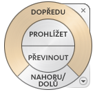 Nástroj Vpřed na nástroji SteeringWheels slouží ke zvětšení nebo zmenšení vzdálenosti mezi aktuálním bodem pohledu a bodem otáčení.