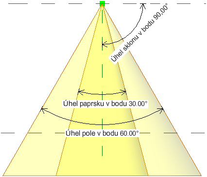 Při definování reflektoru můžete zadat nosník, pole a úhly náklonu.