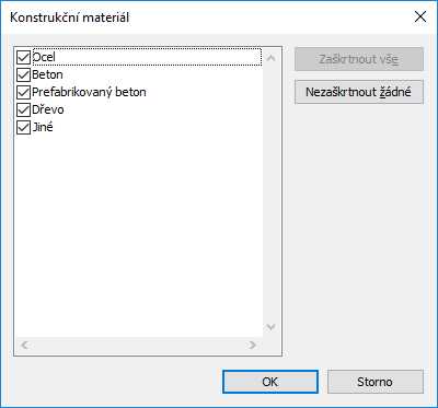 Vyberte materiál, který chcete zobrazit a klikněte na tlačítko OK. Ve výchozím nastavení jsou vybrány všechny.