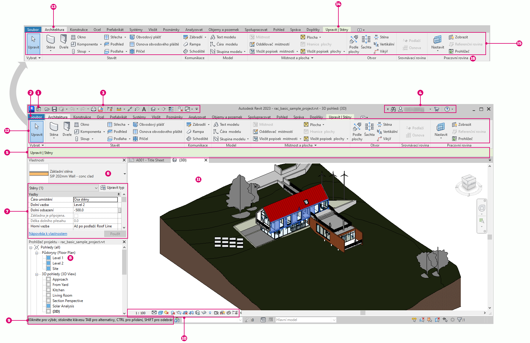 | 14 | Kontextová karta na pásu karet, která poskytuje nástroje, které jsou relevantní pro vybraný objekt nebo aktuální akci |