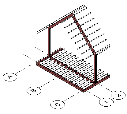Osnovy ve 3D pohledech se zobrazují na vztažných rovinách podlaží v modelu. Lze použít jakoukoli vztažnou rovinu podlaží. 3D pohled určuje, zda/kde jsou osnovy zobrazeny.