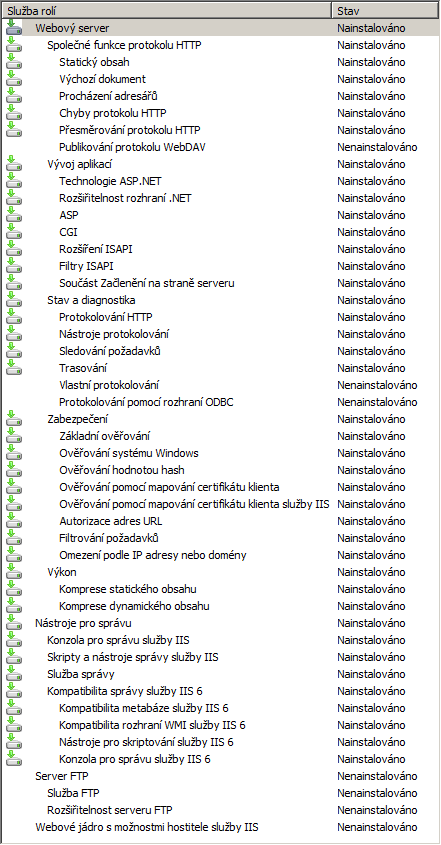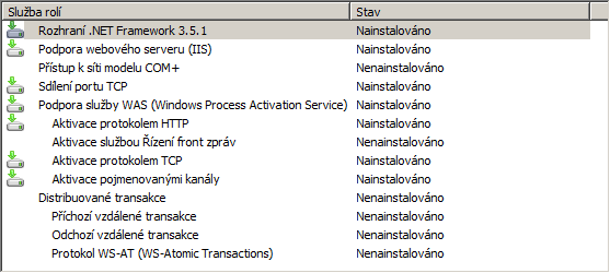 Poznámka: Vzhledem k existujícímu stavu na serveru mohou být nainstalovány i další služby rolí.