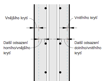 | Další odsazení dolního/vnitřního krytí | Určuje další odsazení od dolního/vnitřního krytí výztuže. Umožňuje to umístit více prvků výztuže společně v různých vrstvách výztuže plochy. |