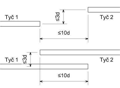 Chcete-li mezi dvě obloukové tyče umístit závitovou spojku výztuže, tyto dvě tyče musí mít stejný střed.