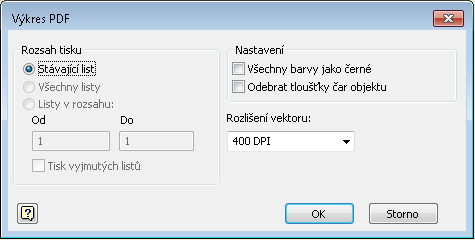 - Kliknutím na tlačítko Možnosti lze přizpůsobit rozsah tisku, nastavení zobrazení a rozlišení vektorové grafiky souboru. Klikněte na tlačítko OK.