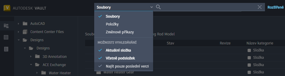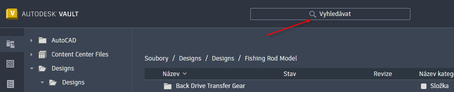 Rozbalení/sbalení panelu vyhledávání