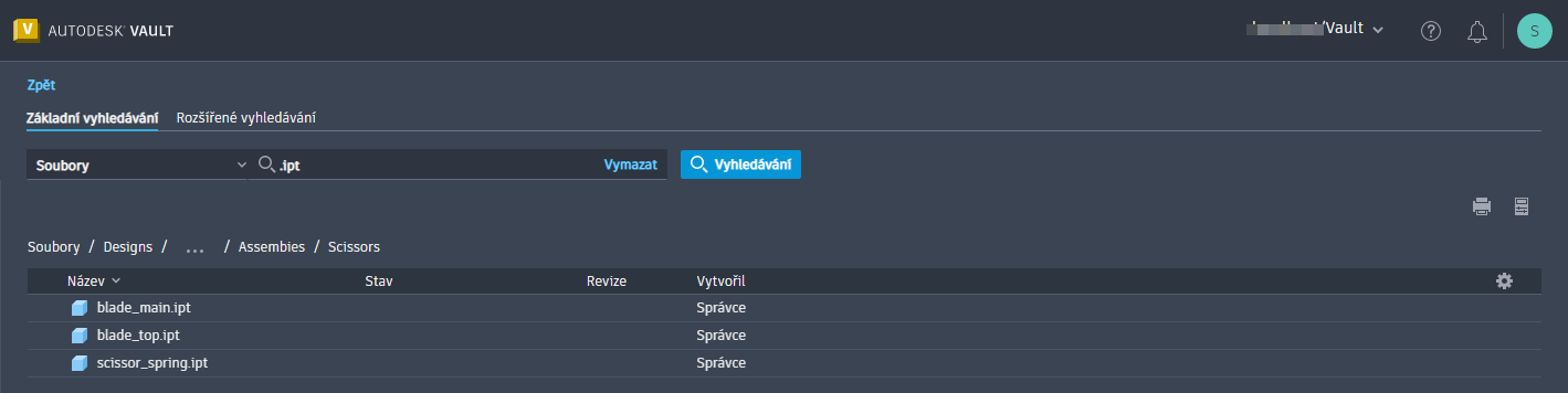 Objekty odpovídající kritériím vyhledávání se zobrazí na stránce Výsledky vyhledávání. Výsledky vyhledávání zůstanou zobrazeny, dokud neprovedete další rozšířené vyhledávání.