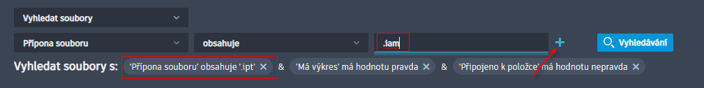 odstraníte jednotlivé parametry vyhledávání. Kliknutím na tlačítko Vymazat odstraníte všechny parametry vyhledávání.