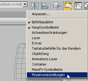 Mit dem Werkzeugkasten können Sie auch neue Voreinstellungen erstellen und den Pinselvoreinstellungs-Manager aufrufen, mit dem Sie Voreinstellungen bearbeiten sowie Voreinstellungsgruppen speichern und laden können. Die aktuelle Voreinstellungsgruppe wird gespeichert, wenn Sie 3ds Max beenden, und wiederhergestellt, wenn Sie 3ds Max das nächste Mal starten.