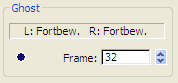 In den Zahlenauswahlfeldern im Bereich "Ghost" können Sie den Quell-Clip und den Ziel-Clip einsehen und weiterspulen, indem Sie Strichmännchen (Ghosts) anzeigen lassen. Das gelbe Strichmännchen stellt den Quell-Clip dar, das rote den Ziel-Clip. Die Bipeds aus beiden Clips sind unter Umständen beim Spulen noch weit voneinander entfernt. Der Ziel-Clip verändert jedoch seine Position, nachdem Sie auf "Start-Frame festlegen" klicken. Wenn ein geeignetes Start-Frame gefunden wurde, klicken Sie auf "Start-Frame festlegen", damit die Werte aus dem Feld "Frame" in das Feld "Start-Frame" übertragen werden. Achten Sie darauf, ob der Status der Fußposition im angegebenen Feld korrekt ist.