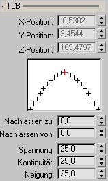 Mit den TCB-Steuerelementen können Sie Nachlassen und Bewegungsbahnen in bereits vorhandenen Keys einstellen.