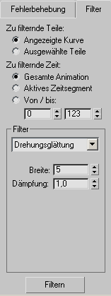 - Diese Option legt den zu filternden Bereich auf die gesamte Biped-Animation, auf das aktive Zeitsegment oder auf einen benutzerdefinierten Frame-Bereich fest.