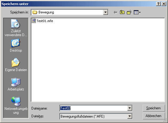 So speichern Sie Bewegungsfluss-Editor-Dateien: