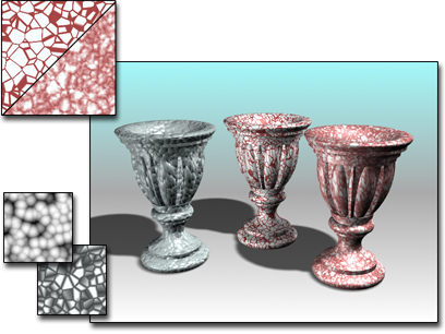 Das zellförmige Map ist ein Prozedur-Map, das ein für verschiedene optische Effekte geeignetes Muster erzeugt. Das Muster lässt sich beispielsweise für Mosaik-Kacheln, Kieselsteine und sogar Wasserflächen verwenden.