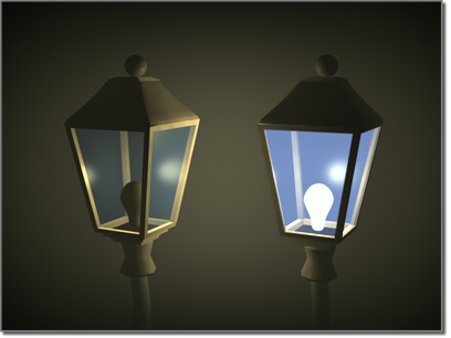 Die Selbstillumination bewirkt, dass der Leuchtbereich nicht von den in der Szene enthaltenen Lichtquellen beeinflusst wird (die Umgebungsfarbkomponente fehlt völlig) und keine Schatten auf das Objekt geworfen werden.