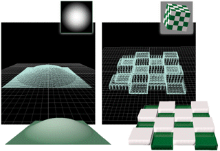 Unter bestimmten Voraussetzungen, z. B. wenn das zugrundeliegende Netz relativ einfach ist, kann die Verwendung eines 3D-Verschiebungs-Maps für ein bearbeitbares Netz durch die Art der Tesselation des zugrundeliegenden Netzes Probleme verursachen. (Diese Probleme treten nicht auf, wenn Sie das 3D-Verschiebungs-Mapping auf eine NURBS-Oberfläche anwenden.) Im beschriebenen Fall funktioniert das Glätten nicht ordnungsgemäß, und das zugrundeliegende Drahtgittermodellnetz wird auf der Oberfläche erkennbar. Dieses Problem können Sie mit den folgenden Methoden beheben: