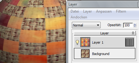 Layer 1 verwendet ein Schachbrett-Bitmap als Layermaske, um den Hintergrundlayer in einem regelmäßigen Muster anzuzeigen.