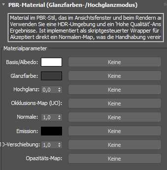 Das PBR-Material (Glanzfarbe/Glanz) ist ein physikalisch basiertes Rendermaterial, das eine genaue Darstellung der Interaktion von Licht mit Oberflächen bietet.