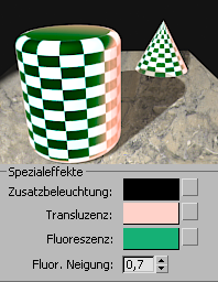 Objekt mit Raytrace-Material mit Transluzenz und Fluoreszenz