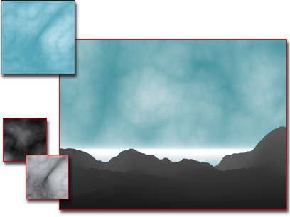 Die Wolken am Himmel wurden mit einem Rauch-Map erstellt
