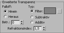 Diese Steuerelemente beeinflussen den Opazitäts-Falloff transparenter Materialien.