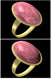 Mit der Filterfarbe und volumetrischer Beleuchtung können Sie Effekte wie zum Beispiel durch ein Kirchenfenster fallendes Licht erzielen. Ray-Trace-Schatten, die von transparenten Objekten geworfen werden, sind in der Filterfarbe getönt.