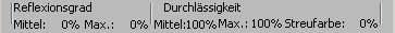 In diesen Feldern werden die Reflexions- und Lichtdurchlässigkeitsdaten des aktiven Materials angezeigt, und zwar sowohl der Durchschnitts- als auch der Maximalwert.