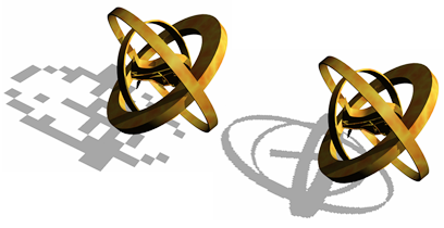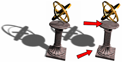 Rechts: Mit höherer Neigung wird der Schatten vom Objekt abgerückt.