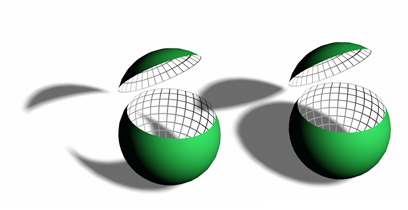 Die Flächen innerhalb der aufgeschnittenen Kugel werfen keine Schatten, wenn "Zweiseitige Schatten" nicht ausgewählt ist.